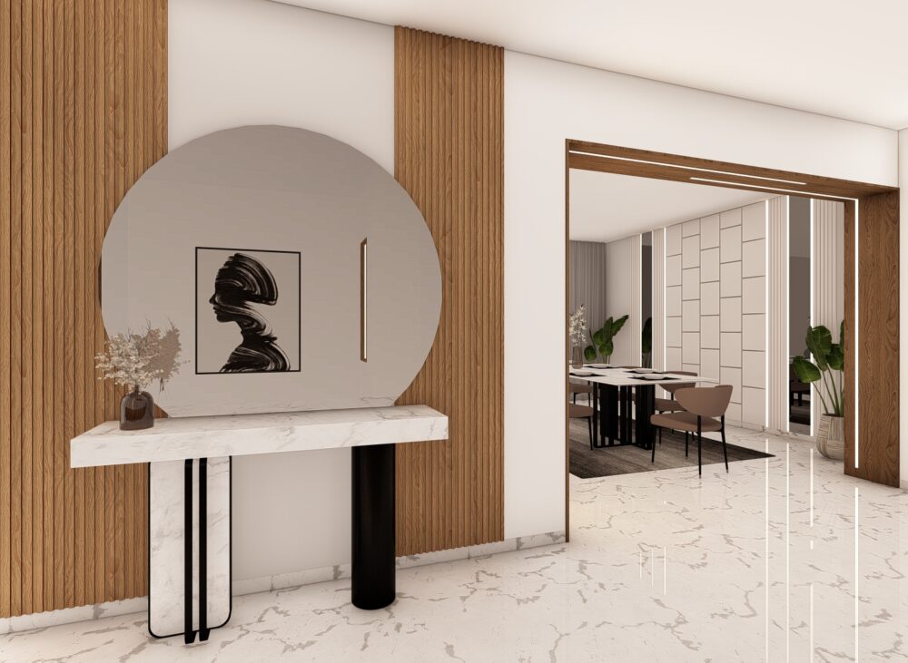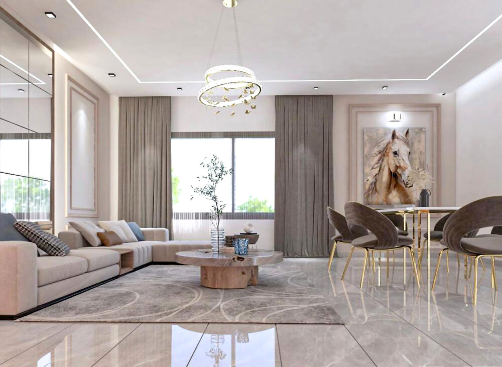 This project focuses on the interior design of a villa’s living room and a hall corner (coin) in a modern minimalist style. The design emphasizes simplicity, functionality, and clean aesthetics, creating spaces that are both practical and visually calming. Key Features Living Room:The living room is designed with a minimalist approach, featuring clean lines, neutral […]