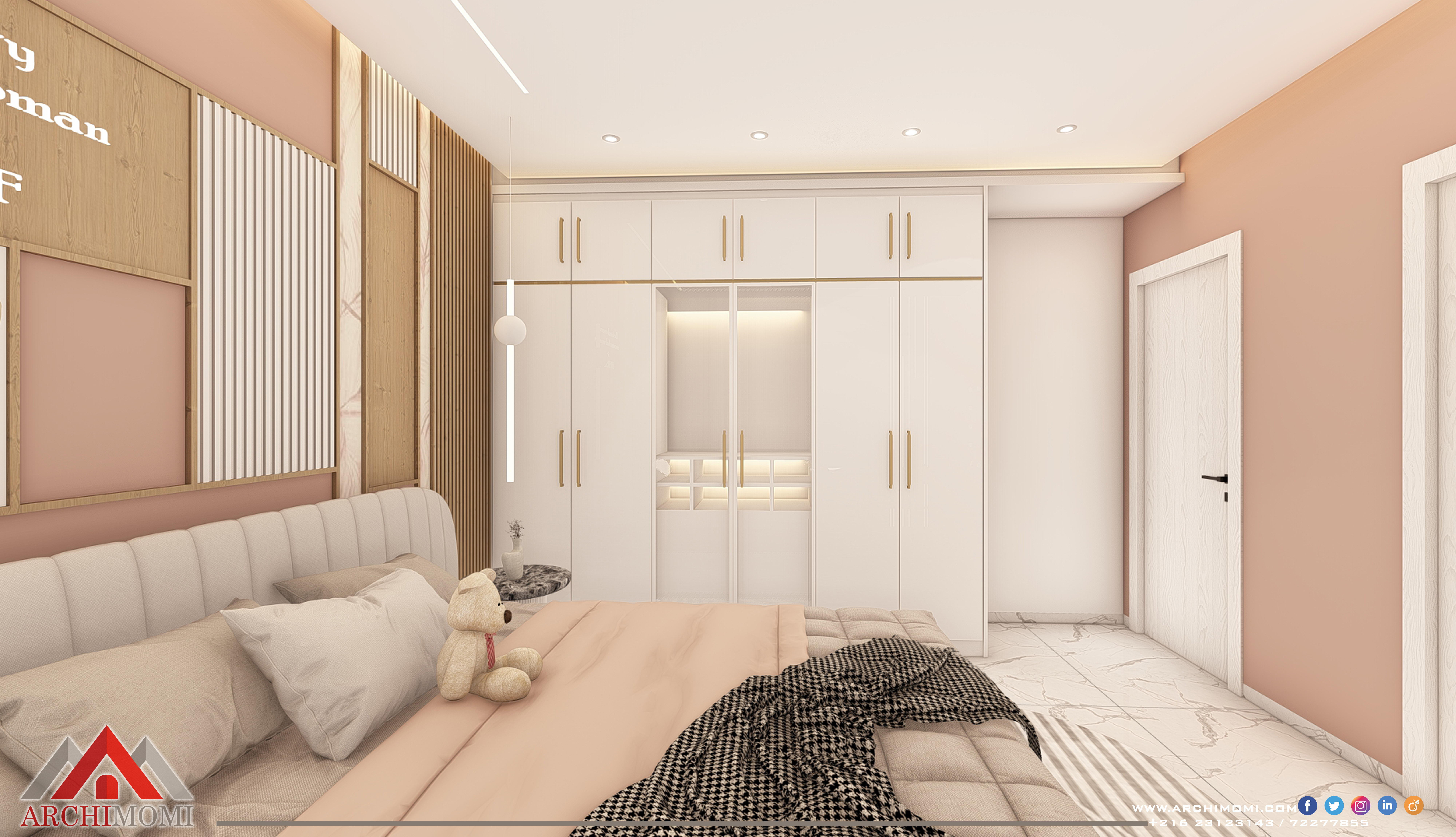 The first-floor redesign focused on the daughter’s bedroom, creating a personalized and modern space that balances comfort and functionality.