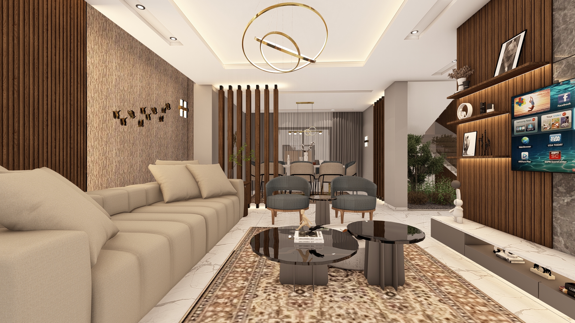 - Living Room: A high-standing living area combining comfort, modern design, and luxury finishes.