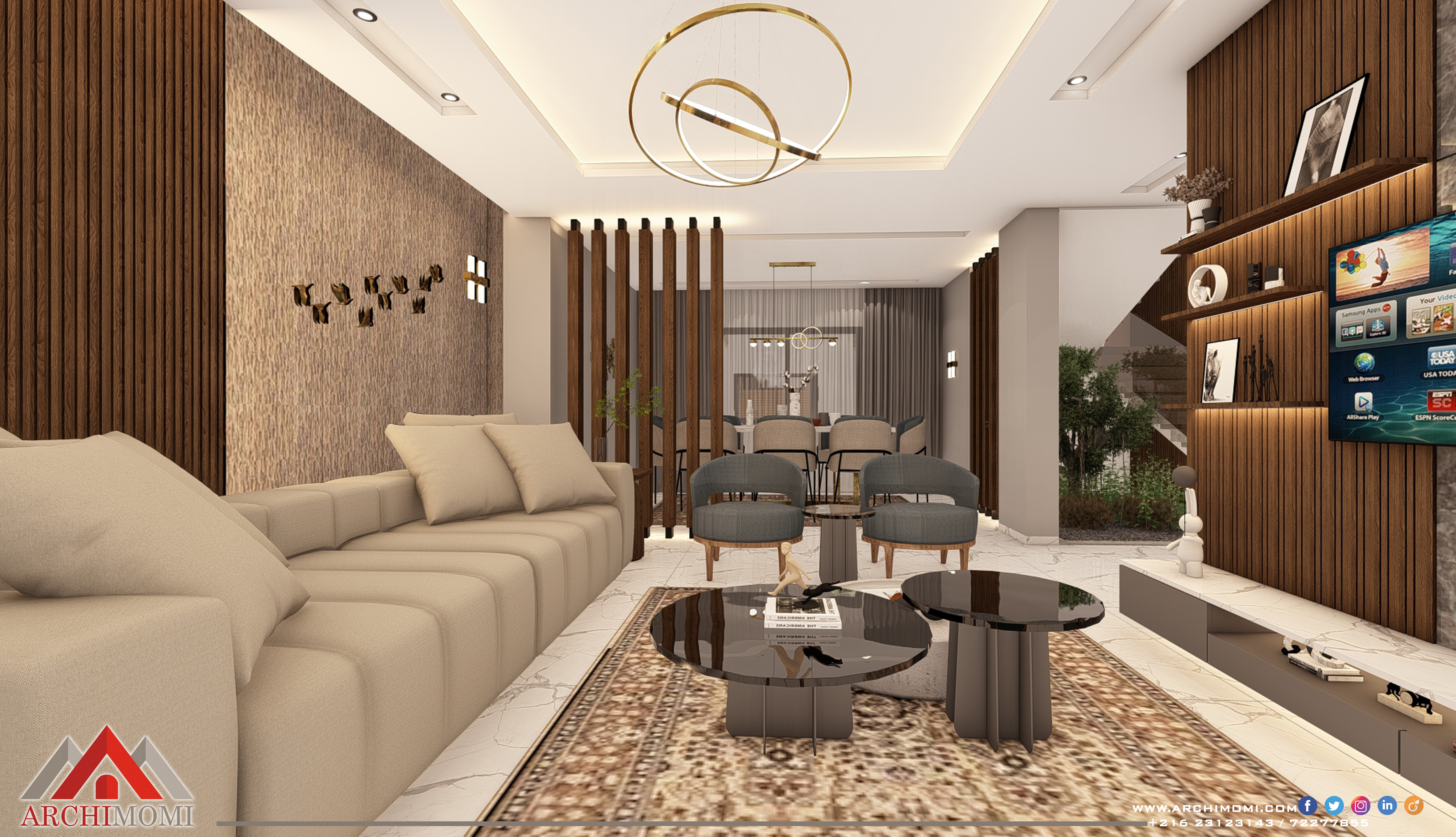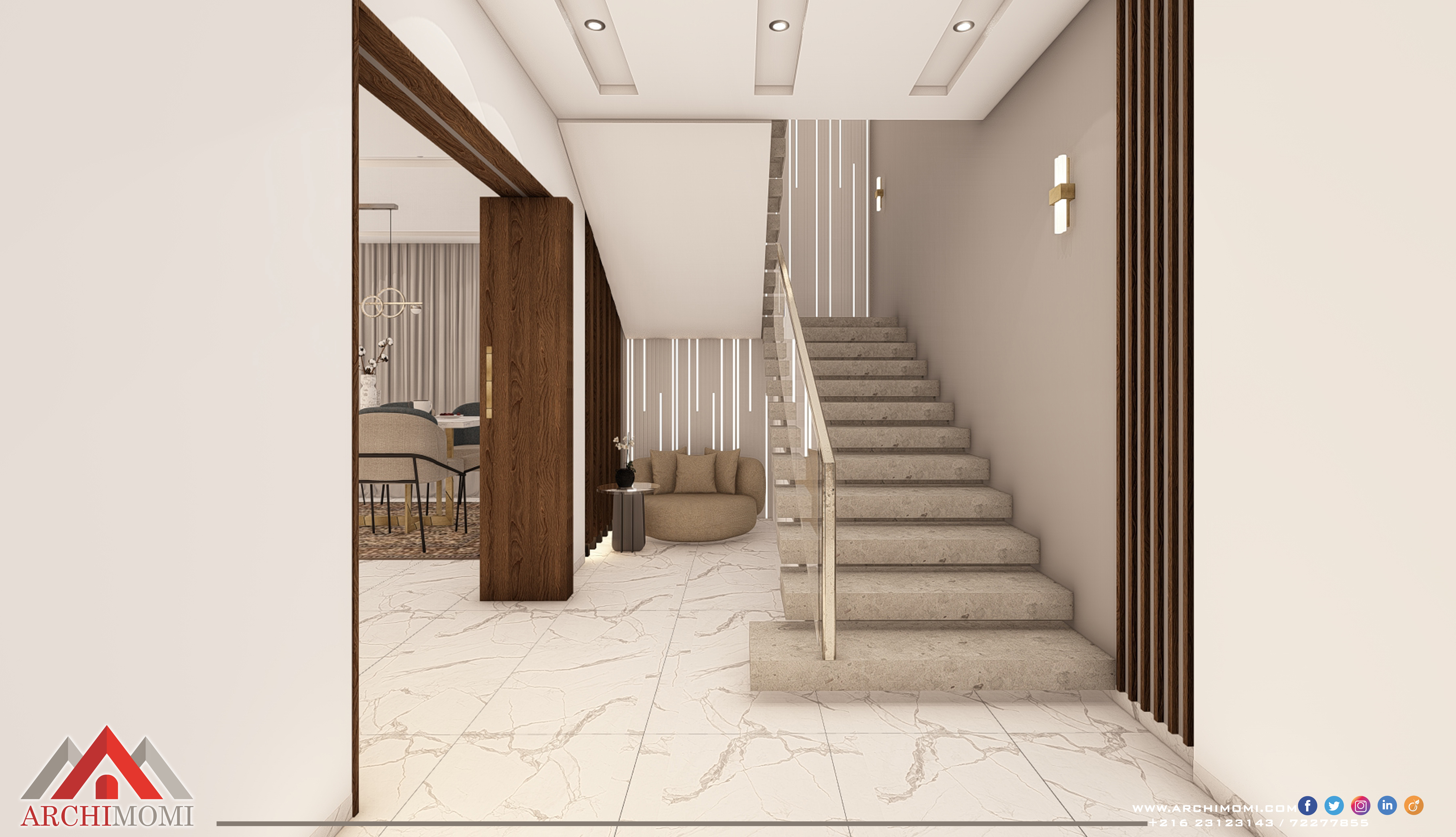 Archimomi was commissioned to reimagine and refresh the interior design of a villa located in Mourouj, Tunis. The client requested a completely new vision for selected spaces in the home, focusing on modern elegance, functionality, and high-standing finishes—while respecting the existing structure.
