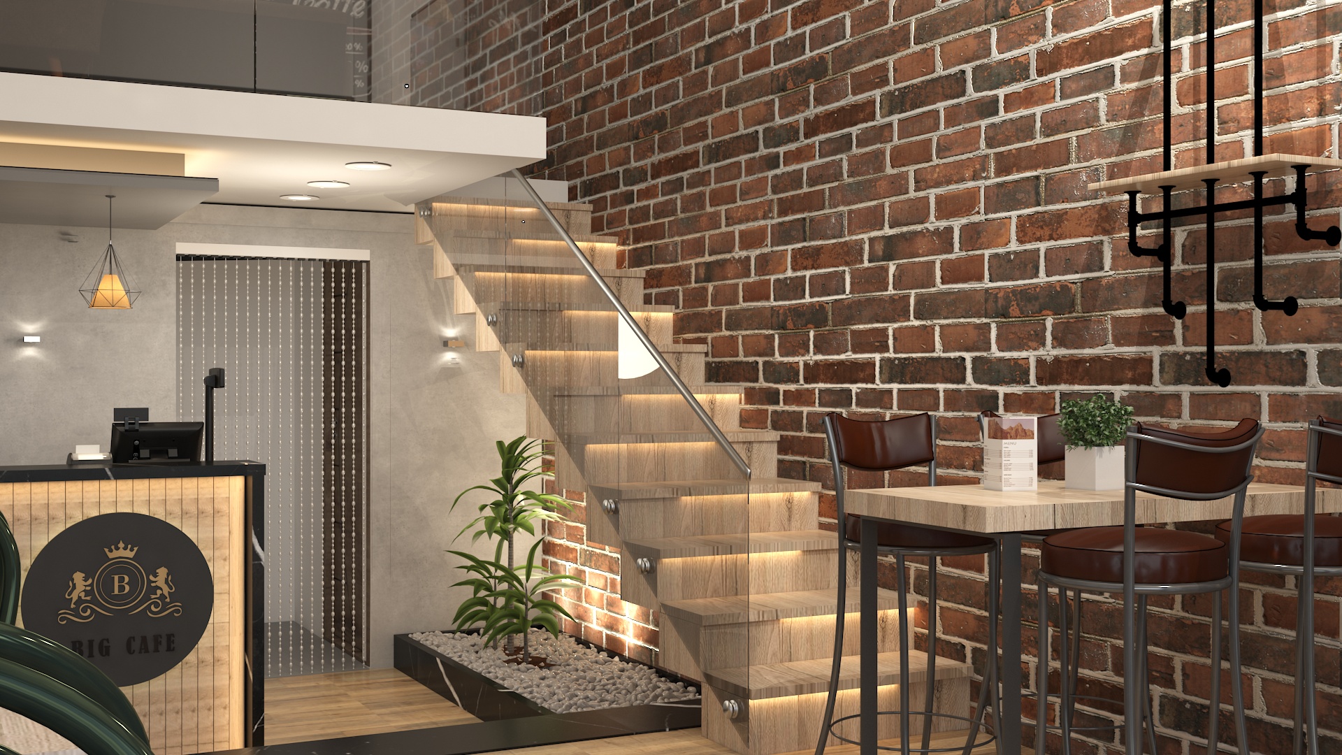 Big Coffee is a contemporary coffee shop designed with a strong industrial character combined with warm and welcoming elements. The project focuses on creating a unique customer experience through a carefully crafted interior atmosphere that reflects both comfort and modernity.