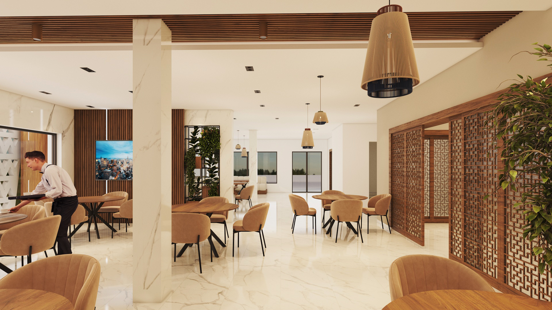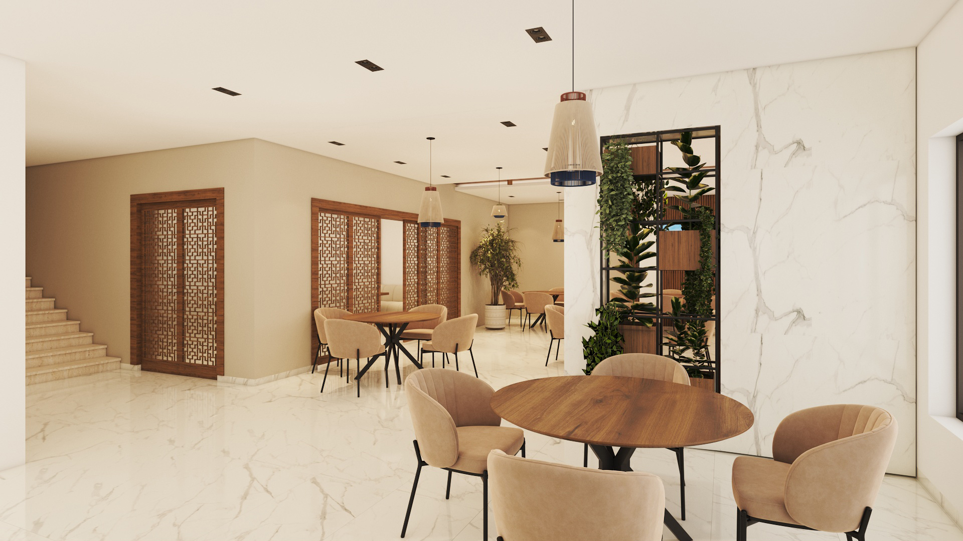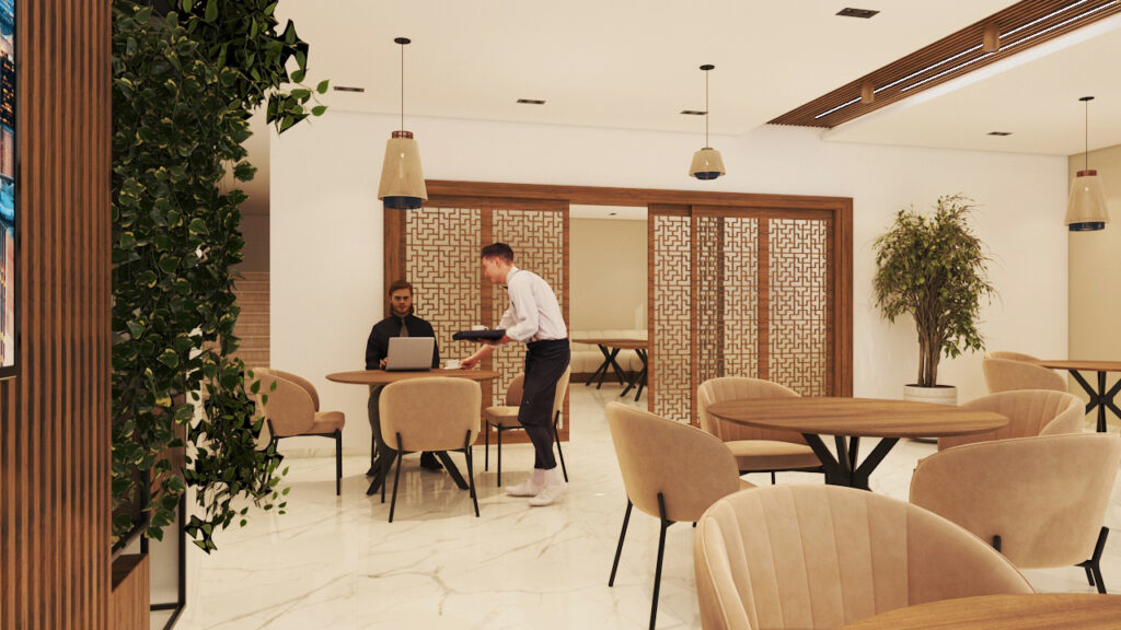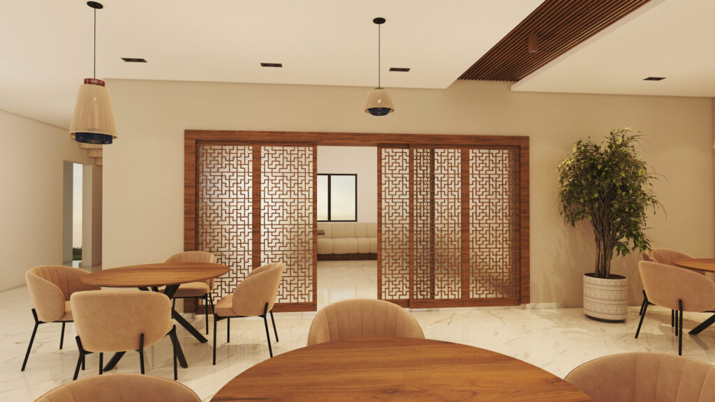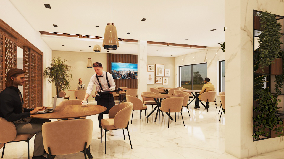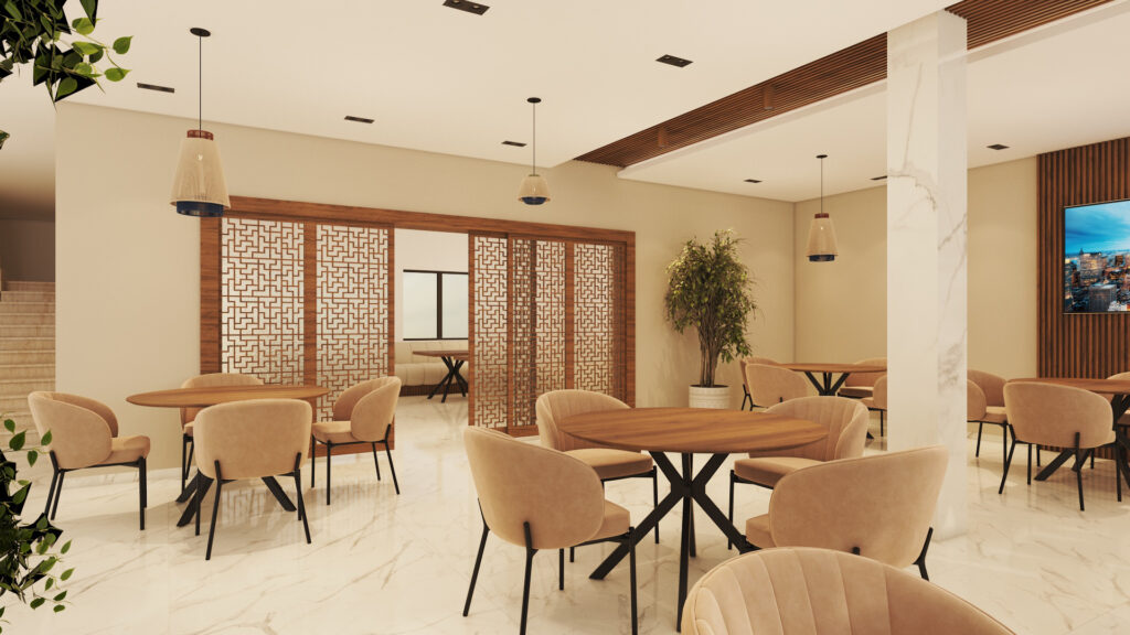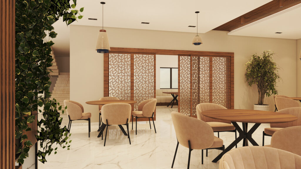 Designed to accommodate reception, gathering, and service areas with a clear circulation flow and welcoming ambiance.