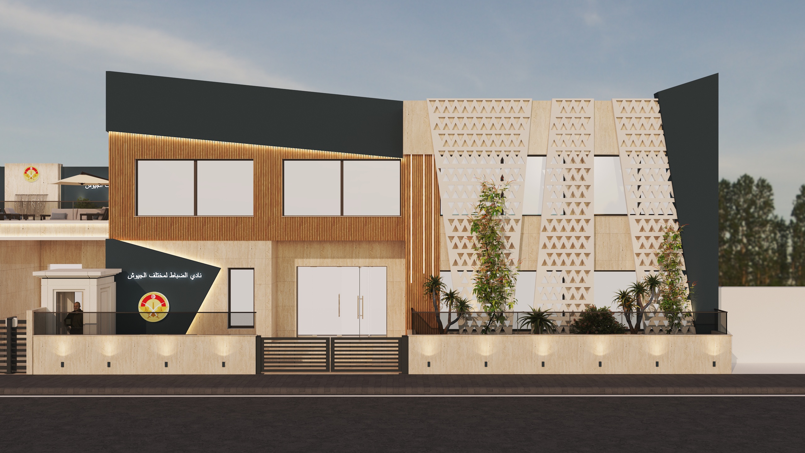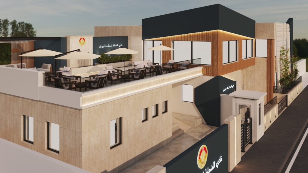 Archimomi presents the architectural and interior design project for the Club of Army Officers in Tunisia, featuring a new modern facade and a complete interior redesign of the ground floor and first floor.