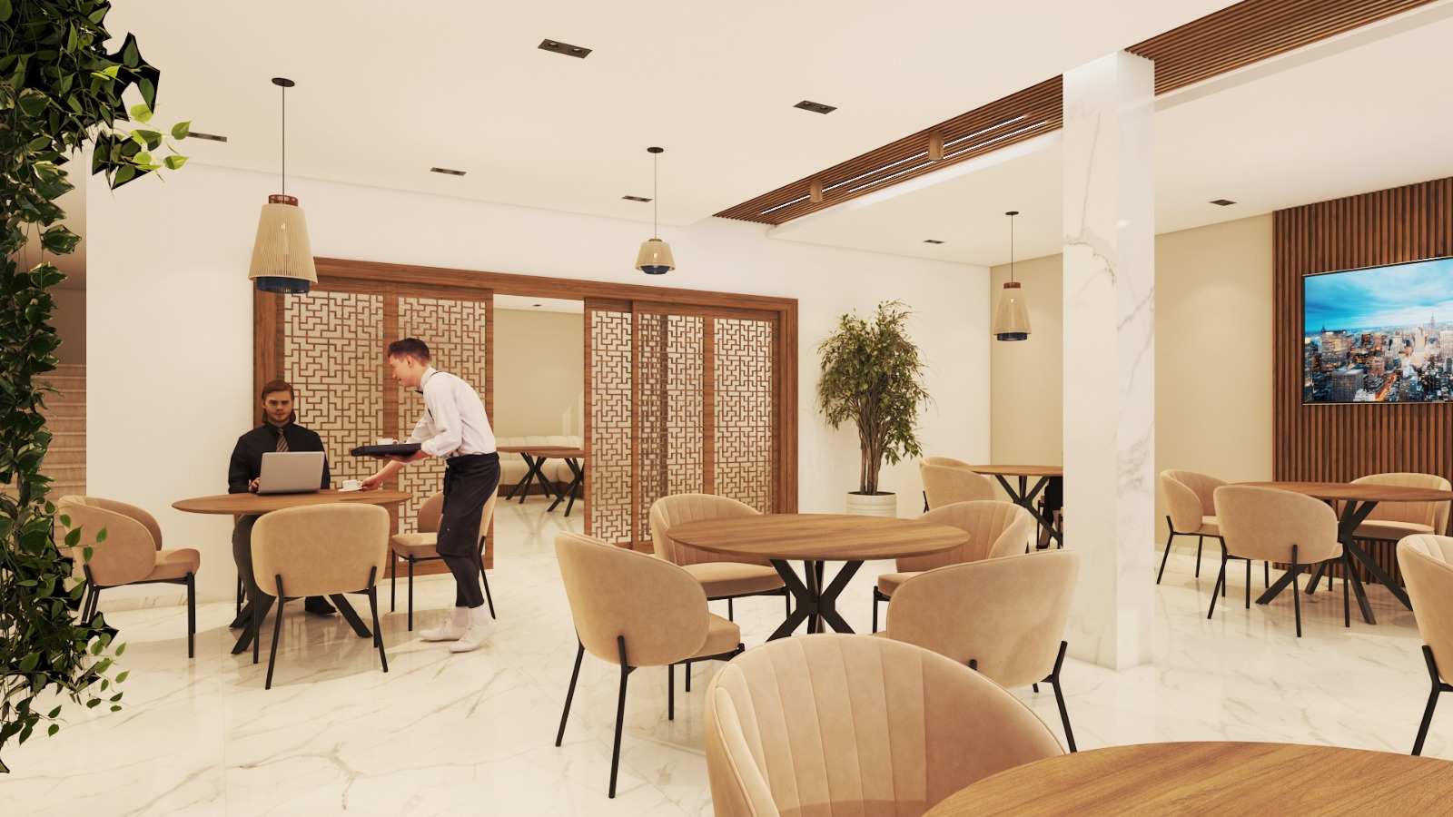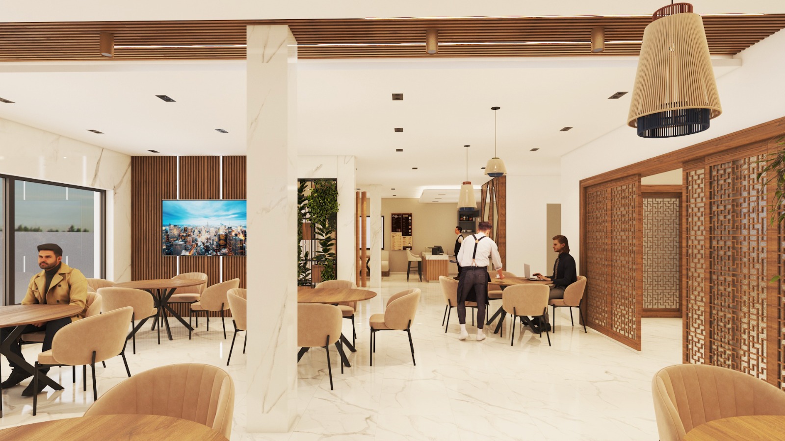 - Repetition of wood finishes throughout the interior to ensure visual consistency and warmth