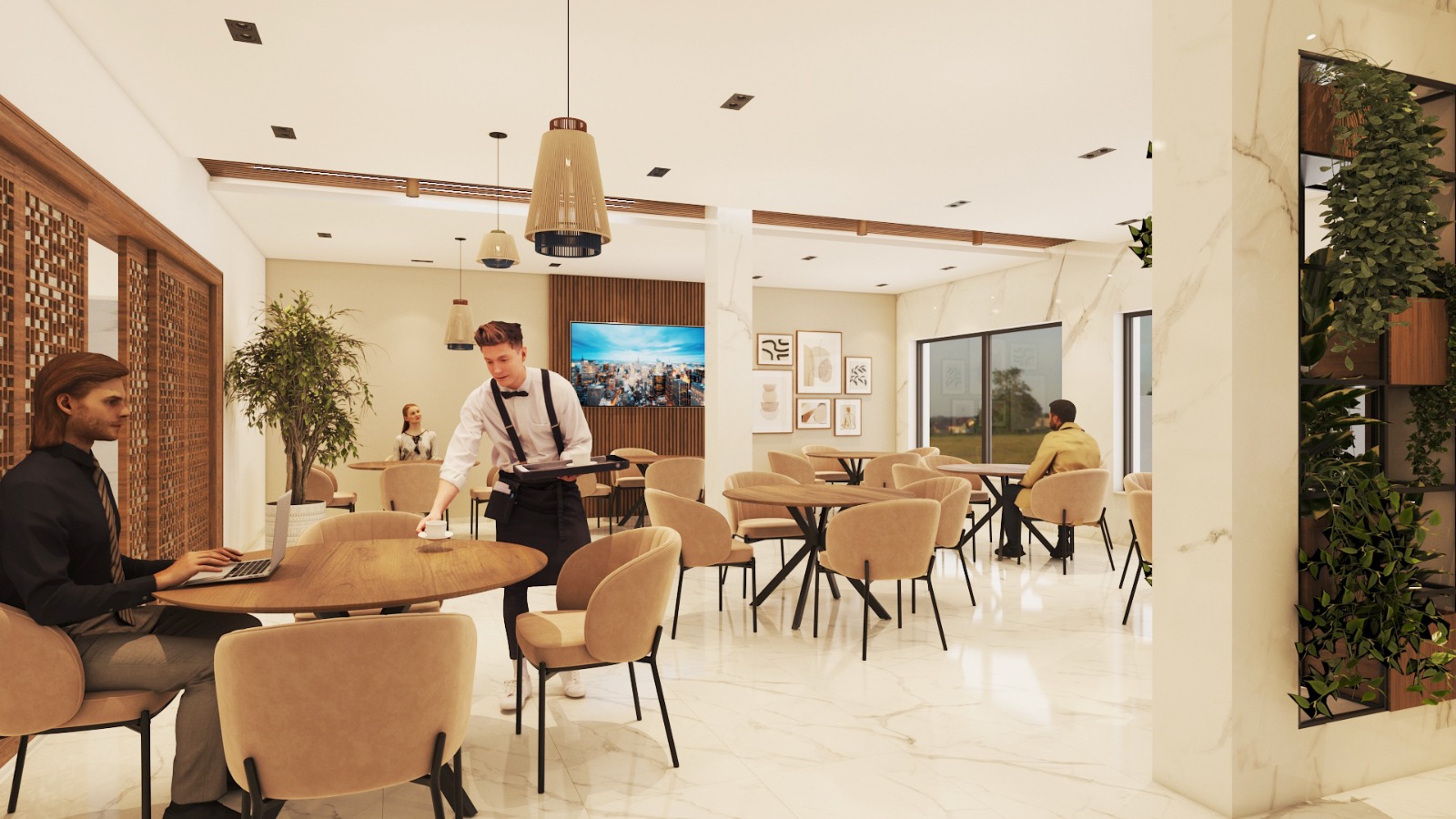 Designed to accommodate reception, gathering, and service areas with a clear circulation flow and welcoming ambiance. - First Floor: