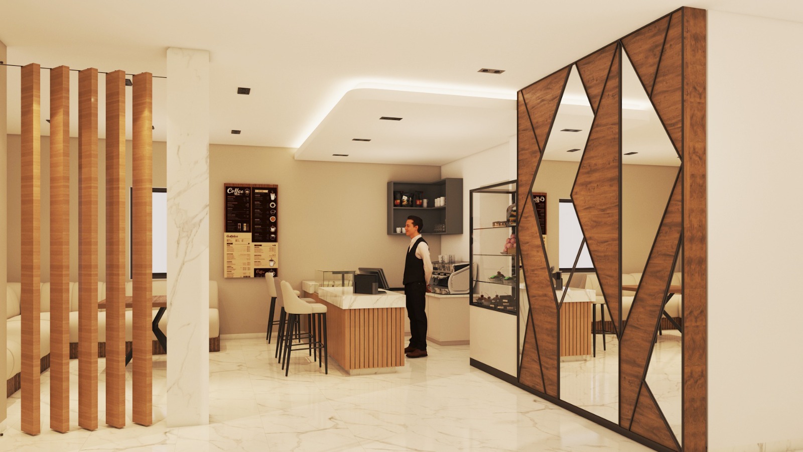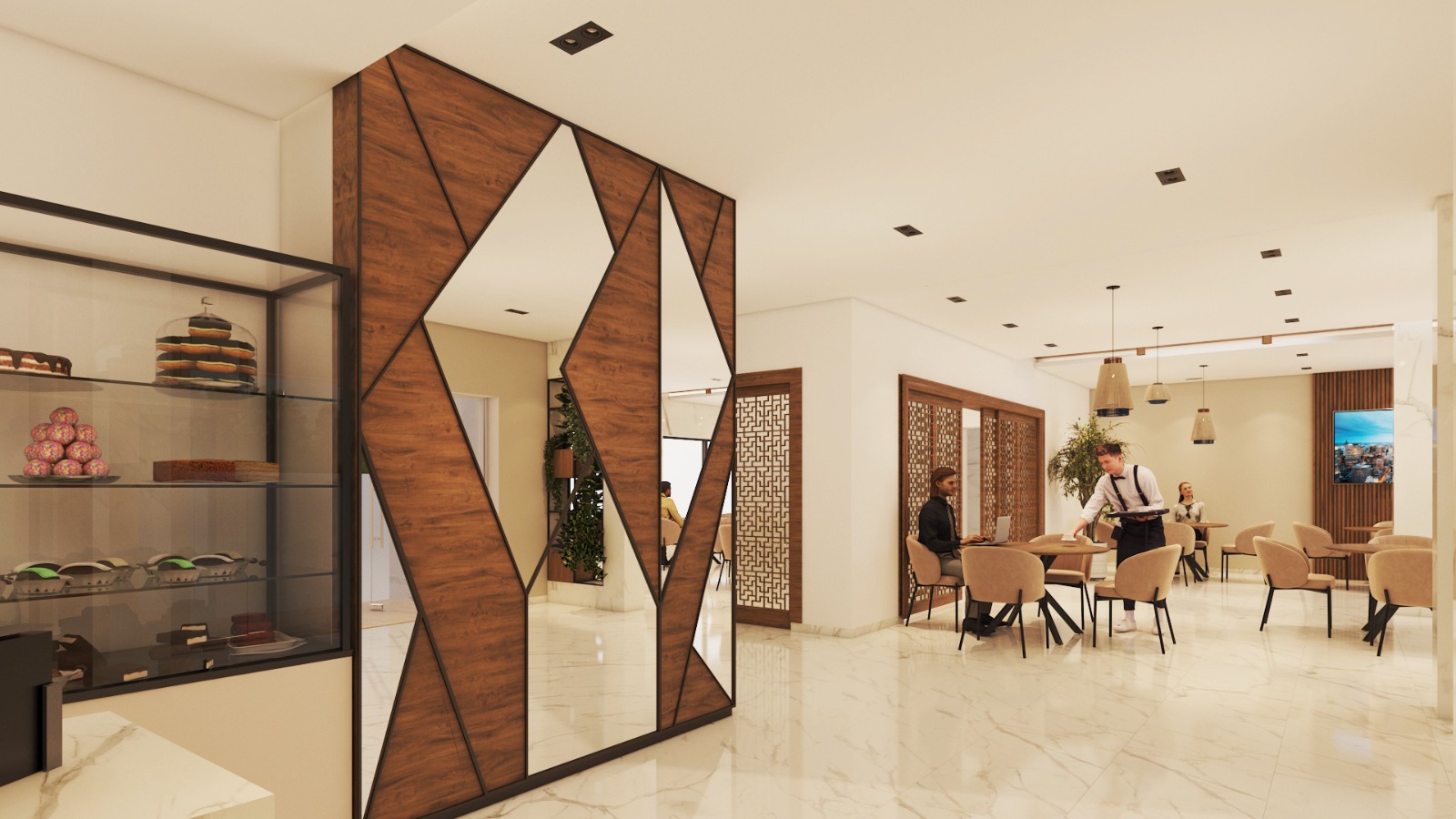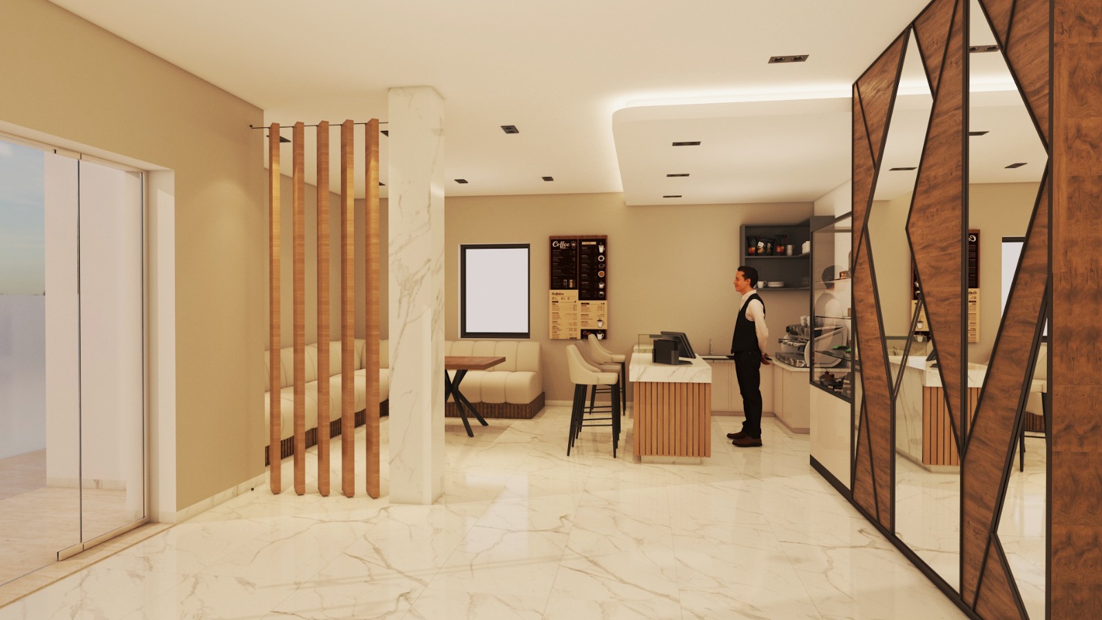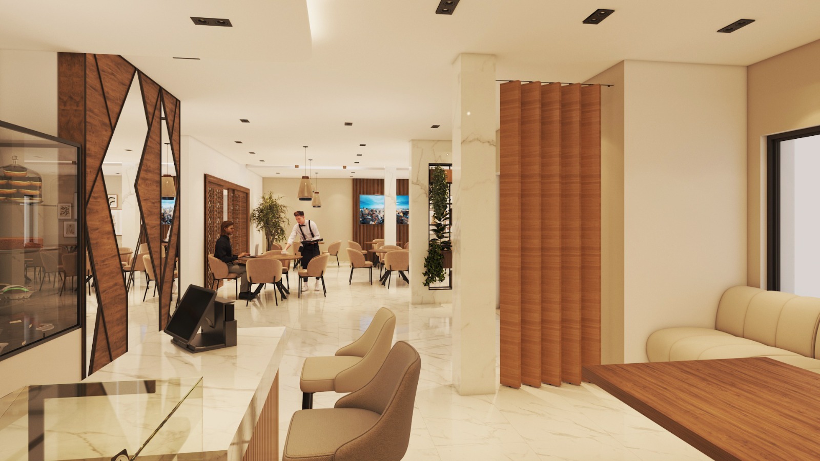The project reflects a contemporary, elegant, and institutional identity, combining commercial functionality with refined finishes.