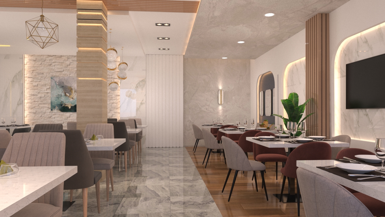 Fatha Restaurant is a 3D interior design project developed to create a refined dining experience that blends luxury, comfort, and modern elegance. The design aims to enhance the restaurant’s identity while offering guests a sophisticated and welcoming atmosphere.