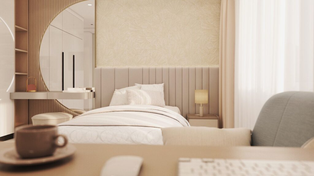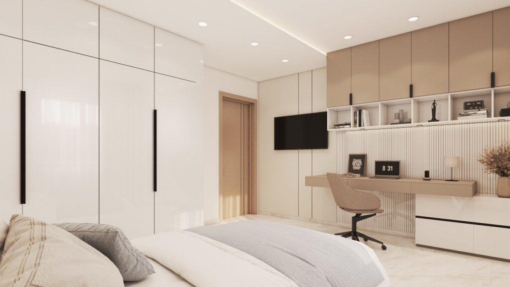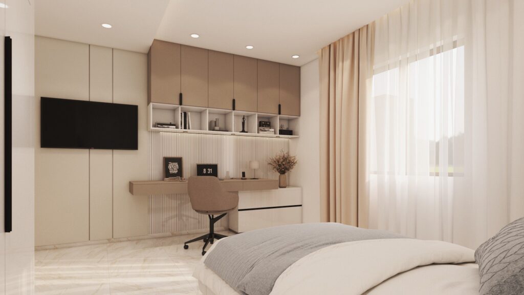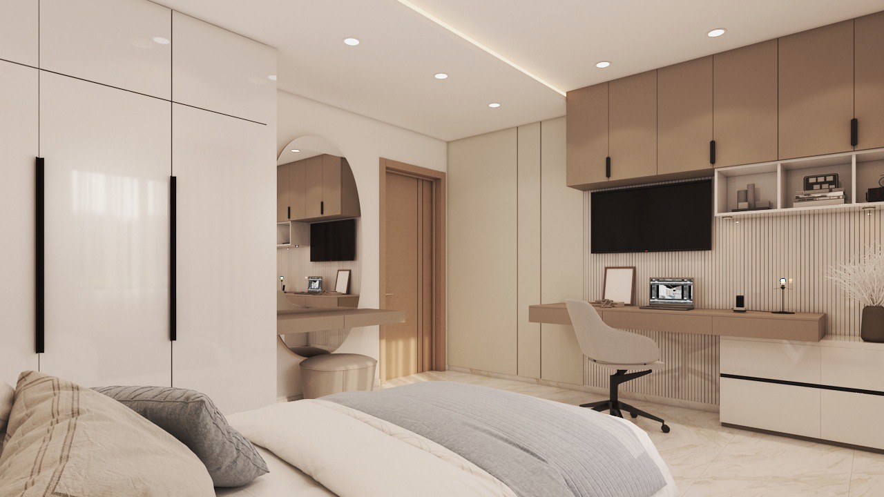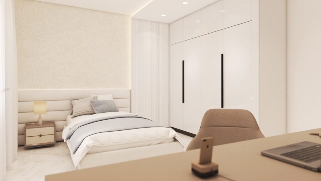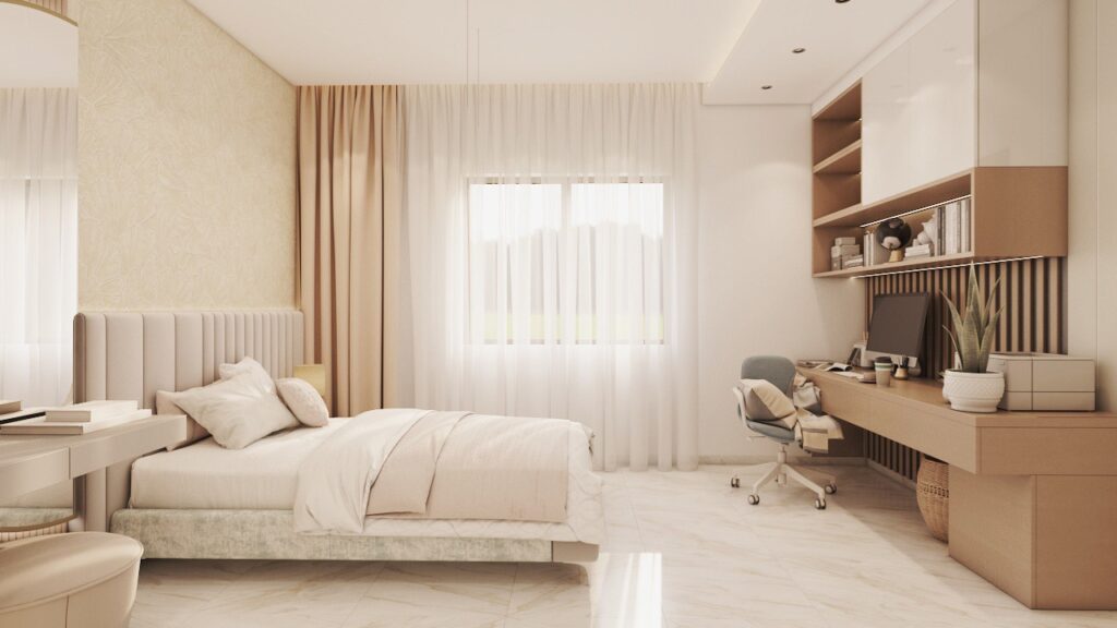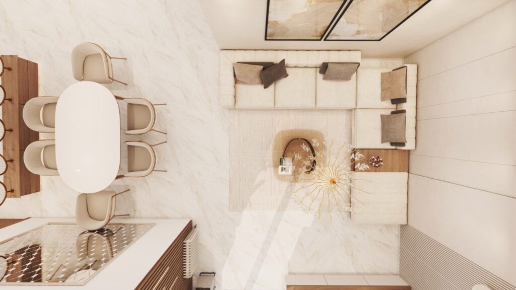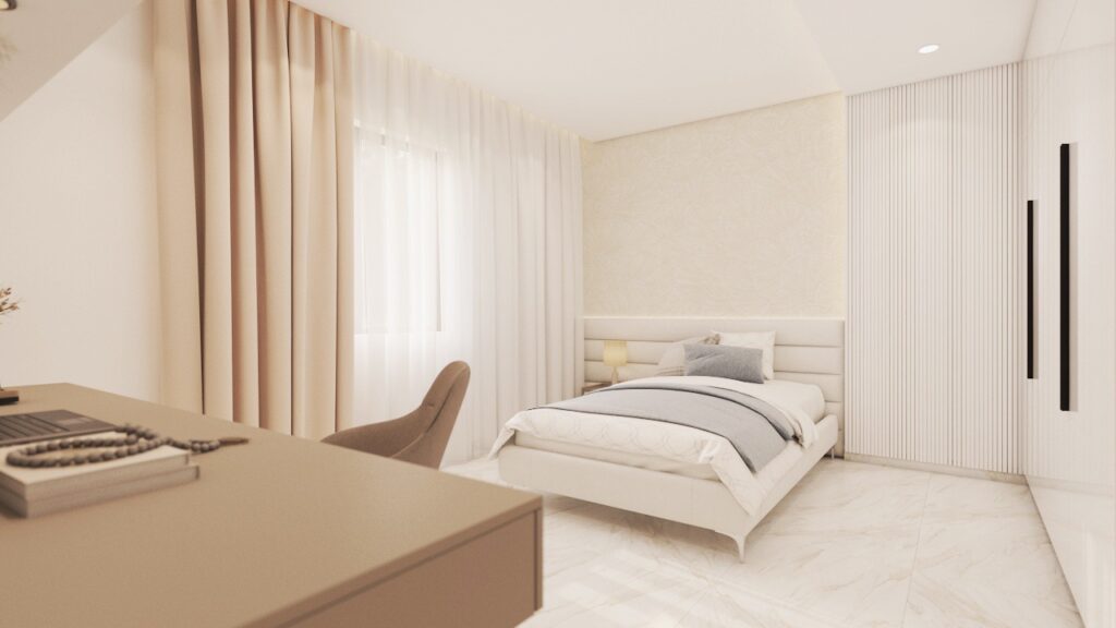 Archimomi presents a luxury 3D interior design for a villa, highlighting the living room, dining area, and two kids’ rooms. The project emphasizes sophisticated aesthetics, comfort, and functional elegance, delivering a high-end visual representation that allows clients to fully experience the villa before construction.
