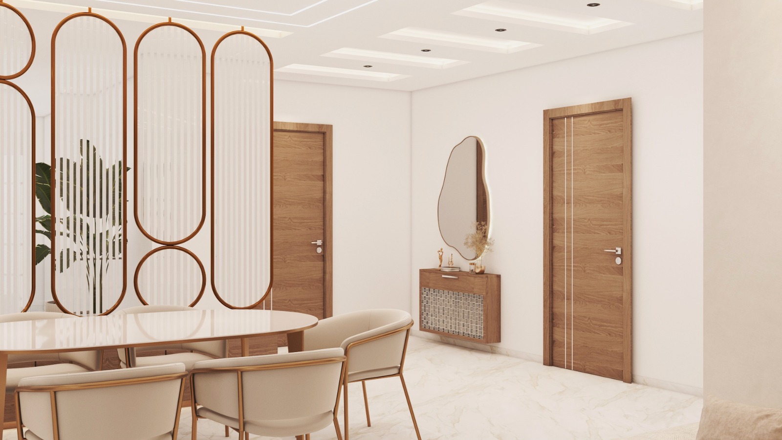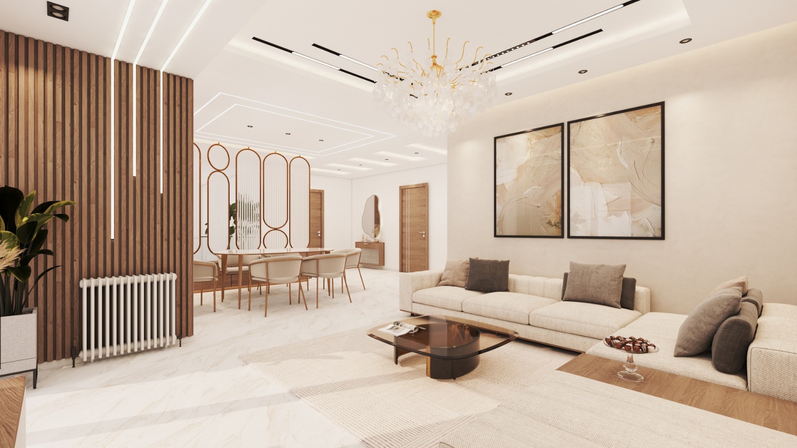 Cohesive Luxury Design: Materials, colors, furniture, and lighting are harmonized across living, dining, and kids’ rooms.