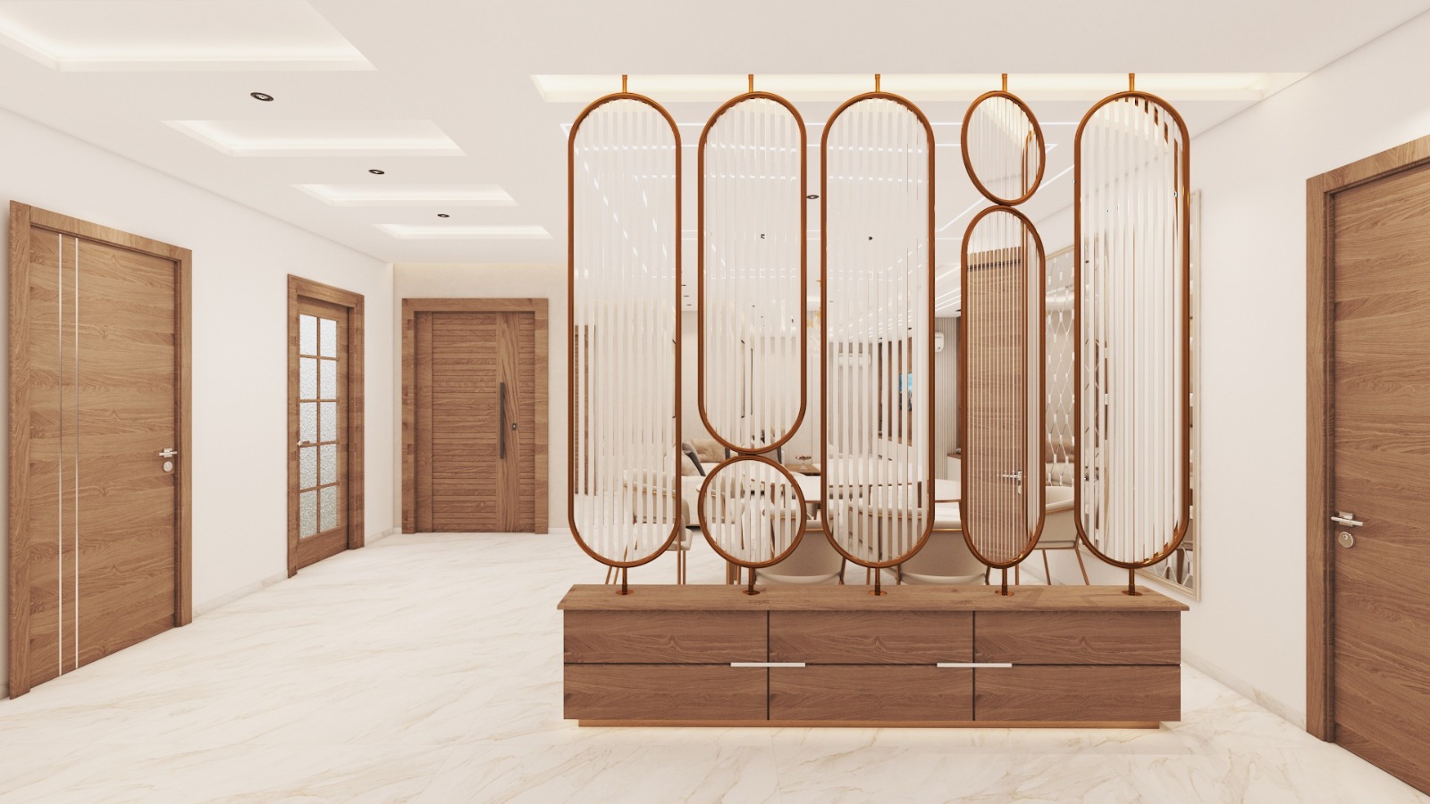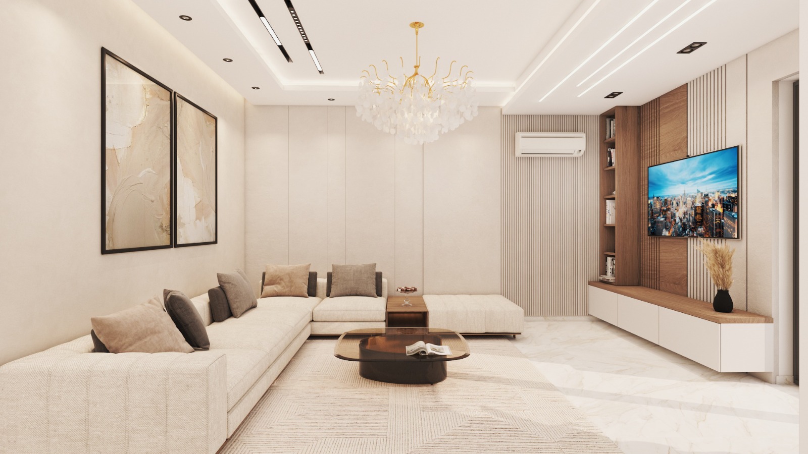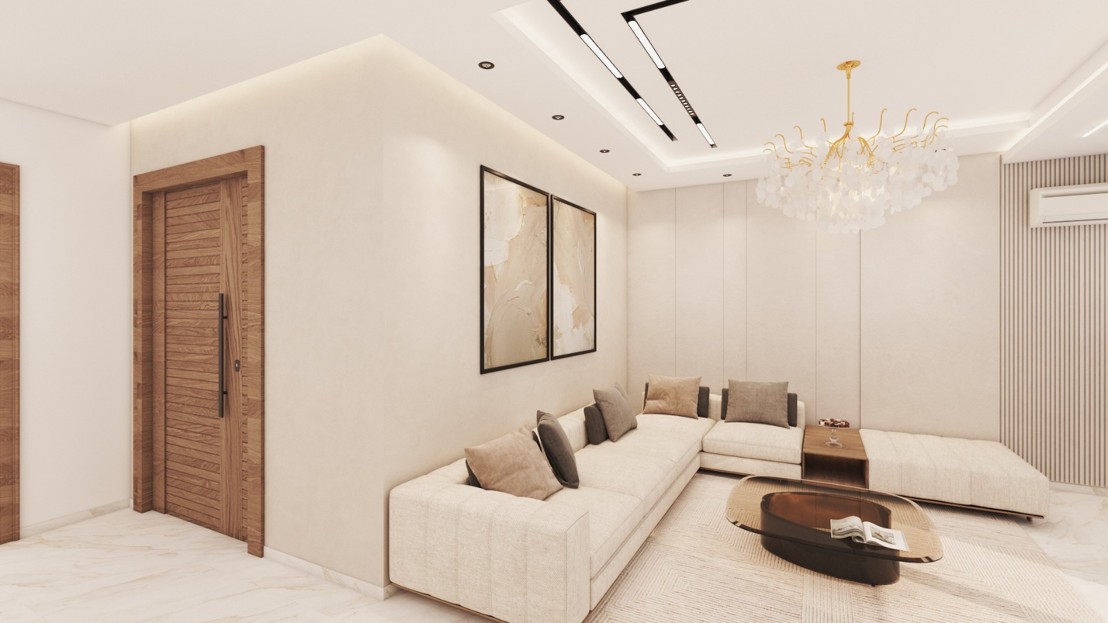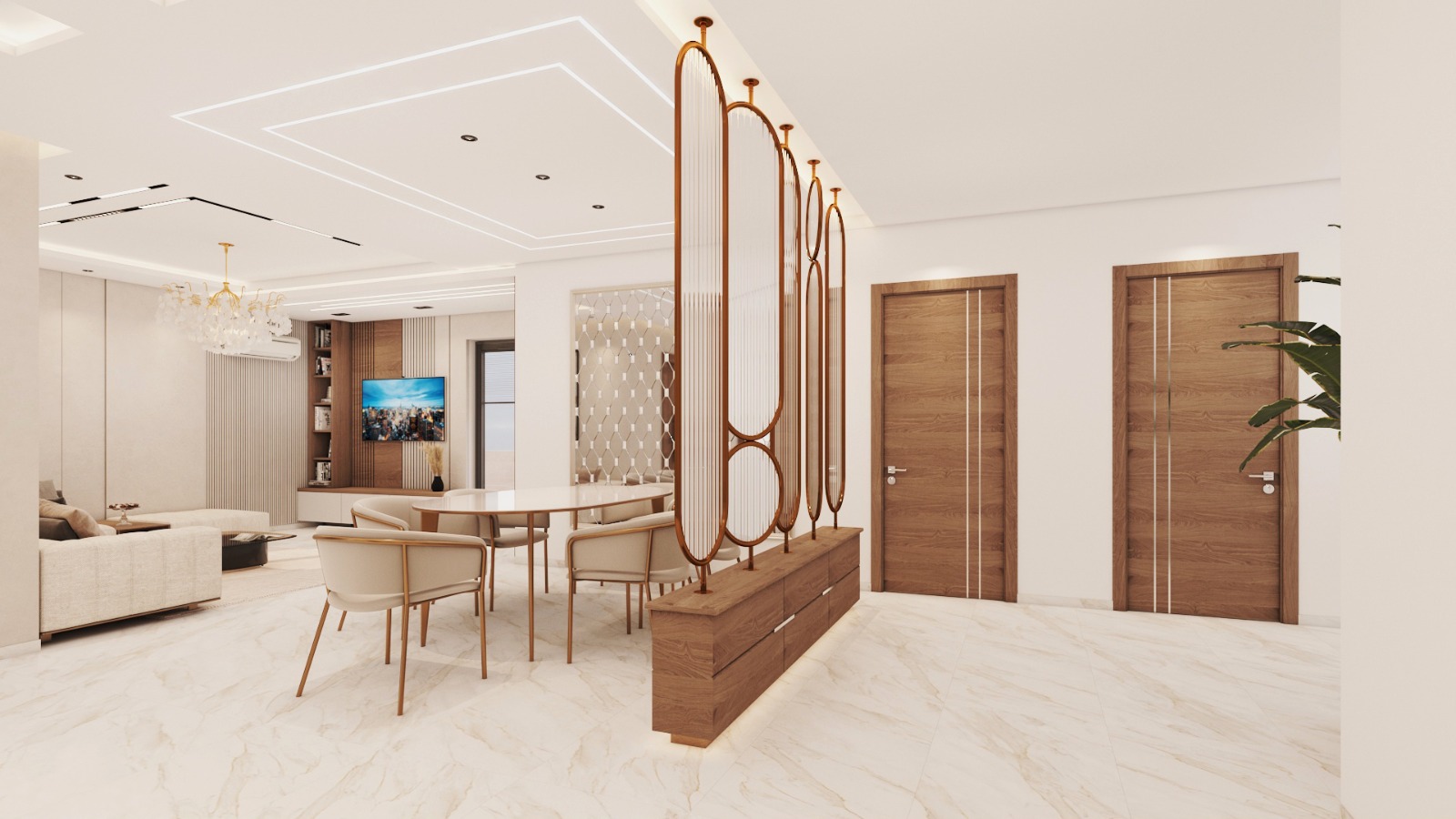 Designed as the heart of the villa, the living room combines luxurious materials, high-end finishes, and elegant furniture. Lighting, textures, and layout are carefully curated to create a warm, inviting, yet opulent atmosphere.