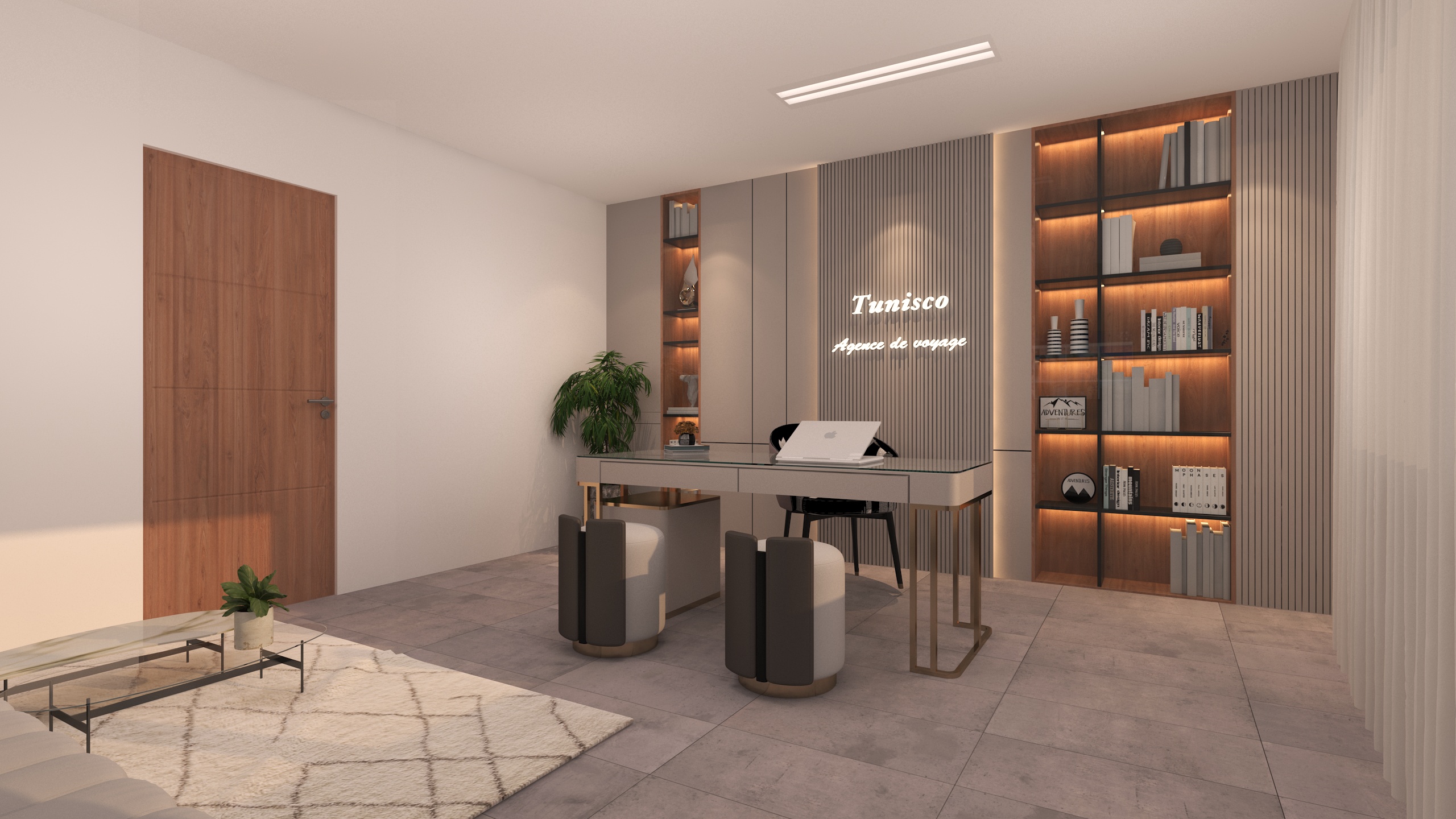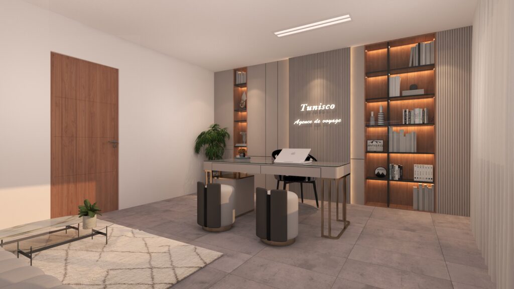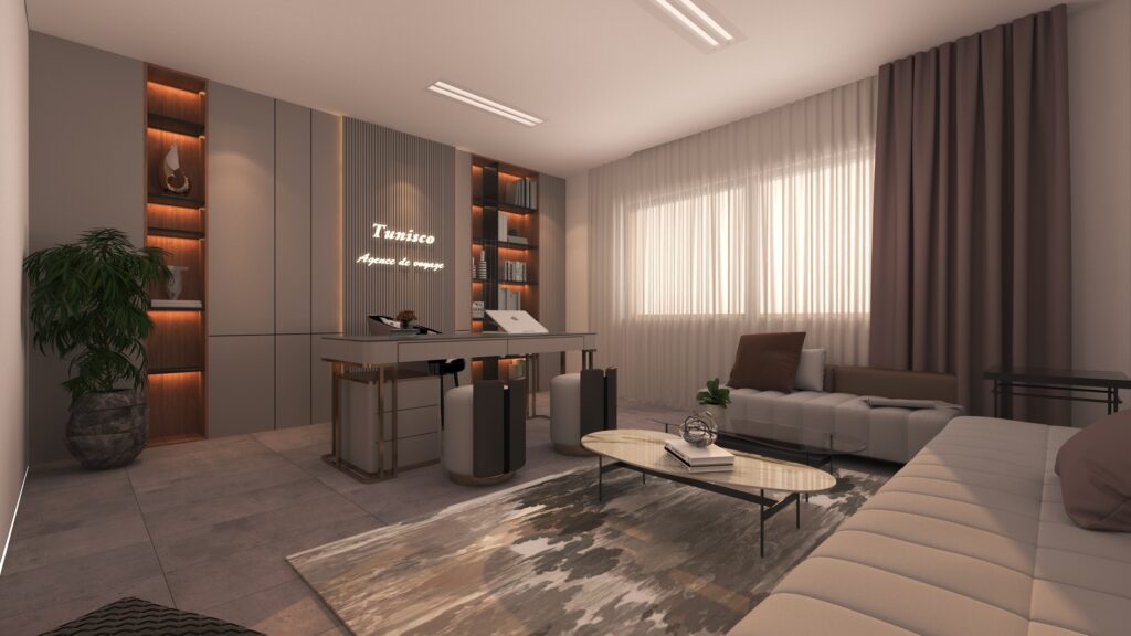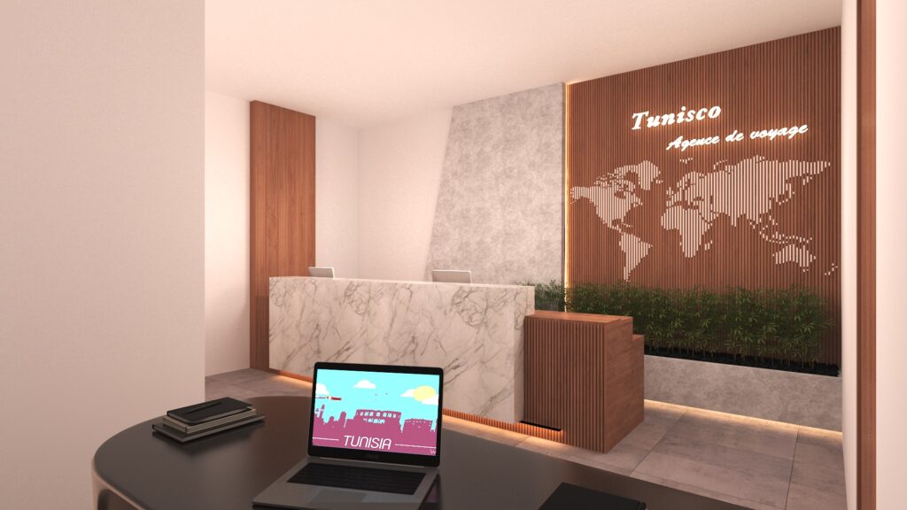 The Archimomi team designed the modern interior space of TunisCo Travel Agency with the aim of creating a professional, welcoming, and contemporary environment that enhances the client experience. The project reflects a clear and strong visual identity aligned with the agency’s brand.