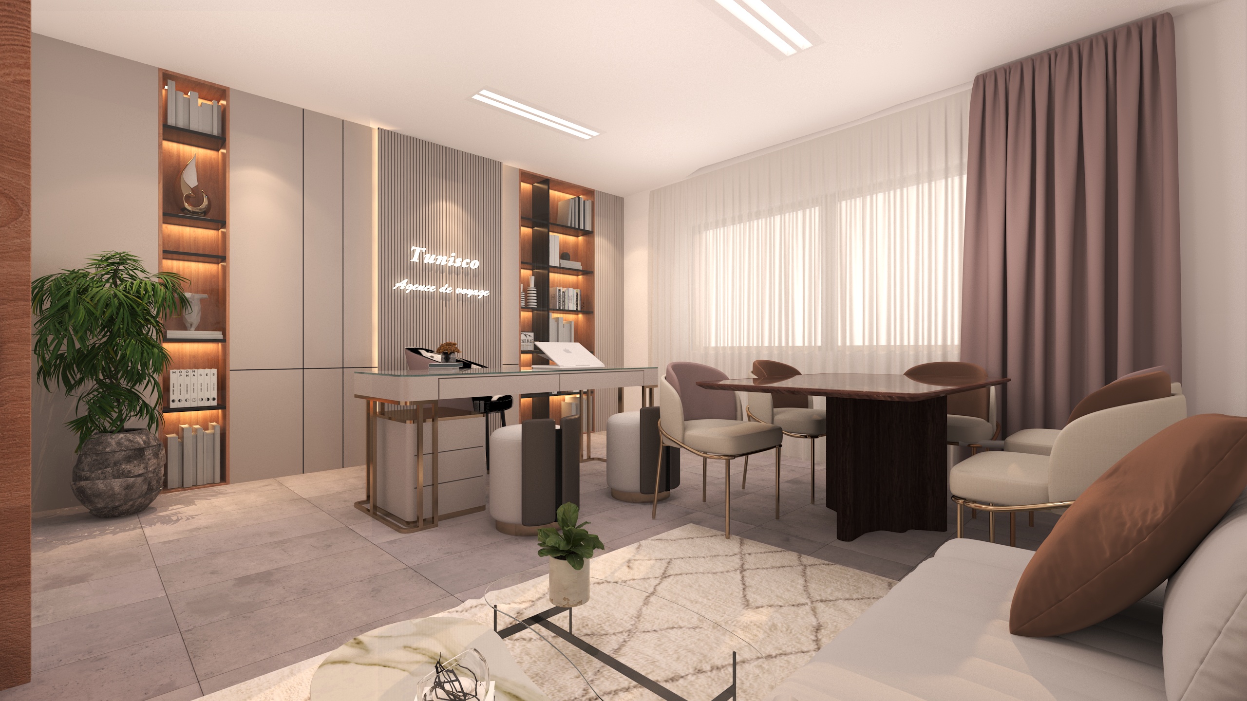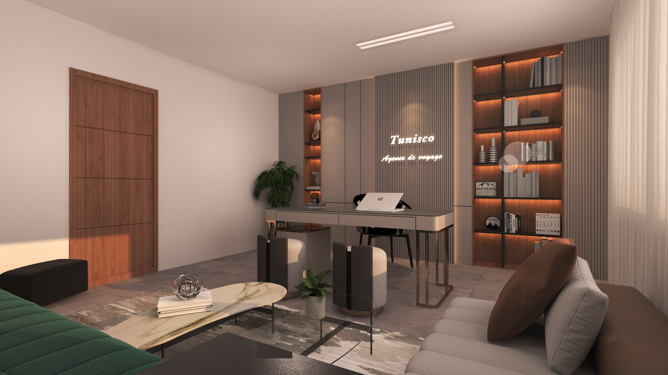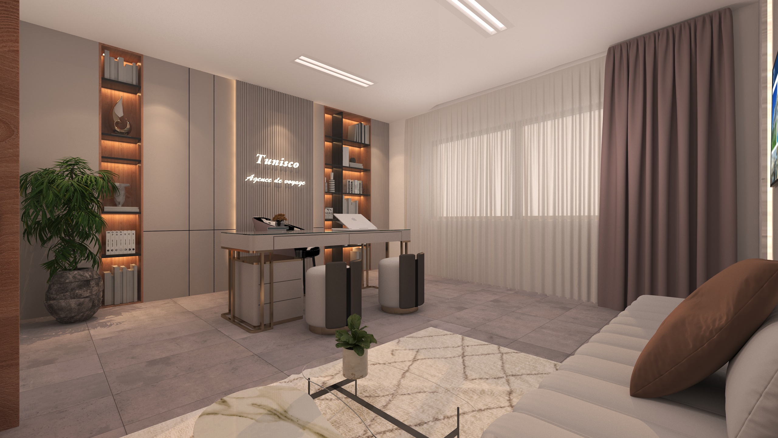 The Archimomi team designed the modern interior space of TunisCo Travel Agency with the aim of creating a professional, welcoming, and contemporary environment that enhances the client experience. The project reflects a clear and strong visual identity aligned with the agency’s brand.