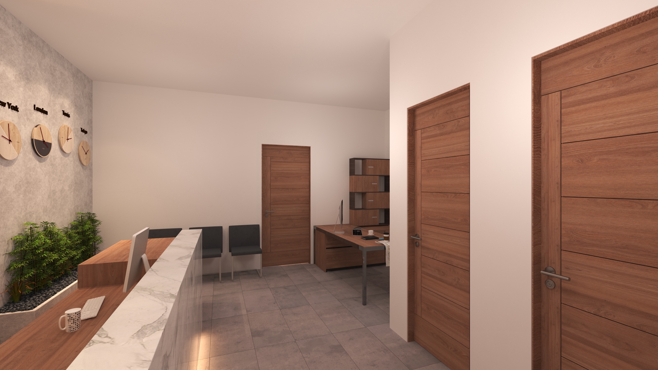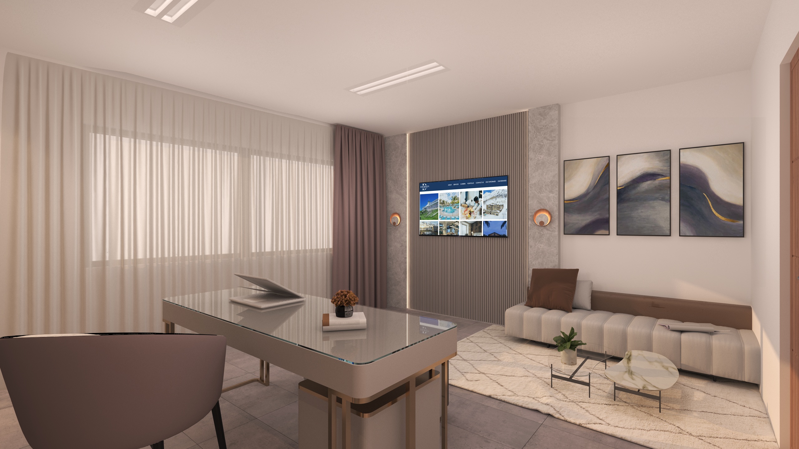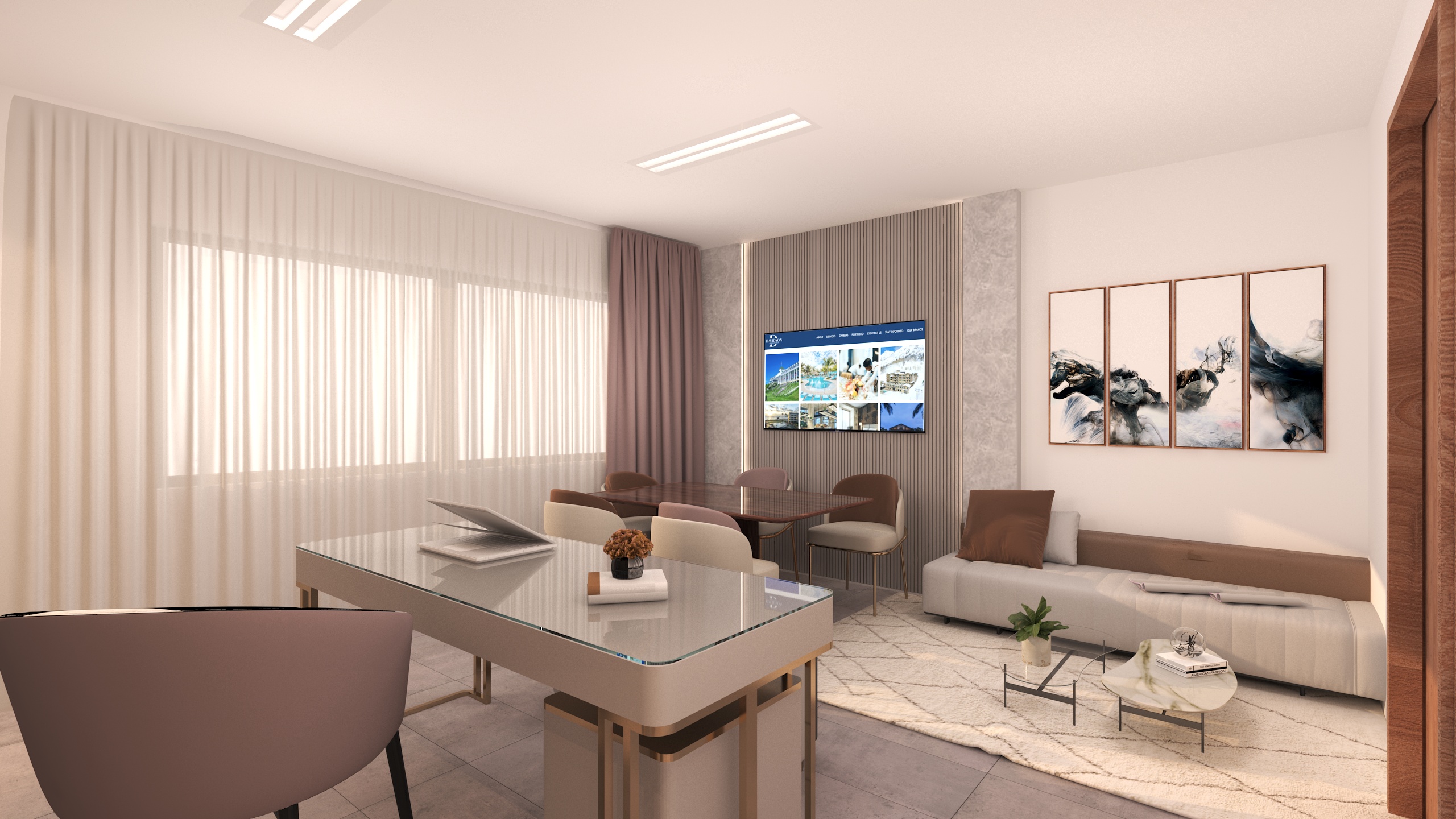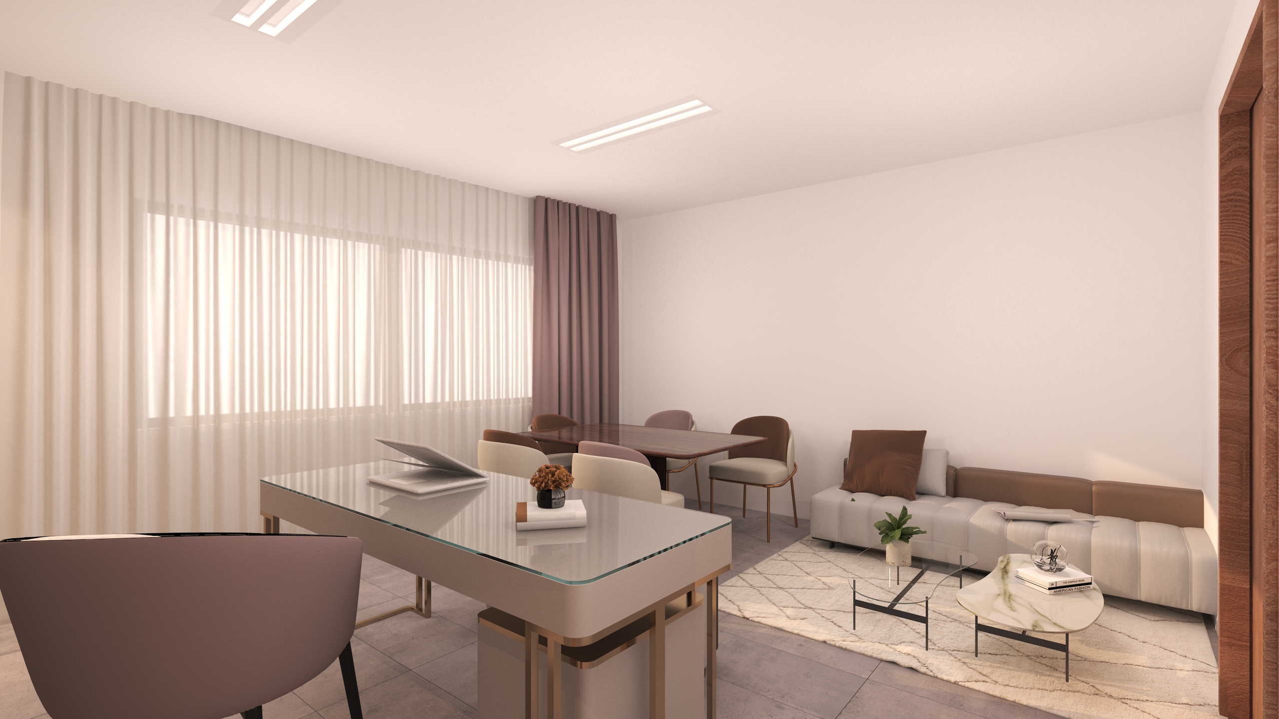 The interior design is based on a modern and minimalist concept, combining clean lines, balanced volumes, and refined materials. The design focuses on clarity, comfort, and functionality while maintaining an elegant and professional atmosphere.